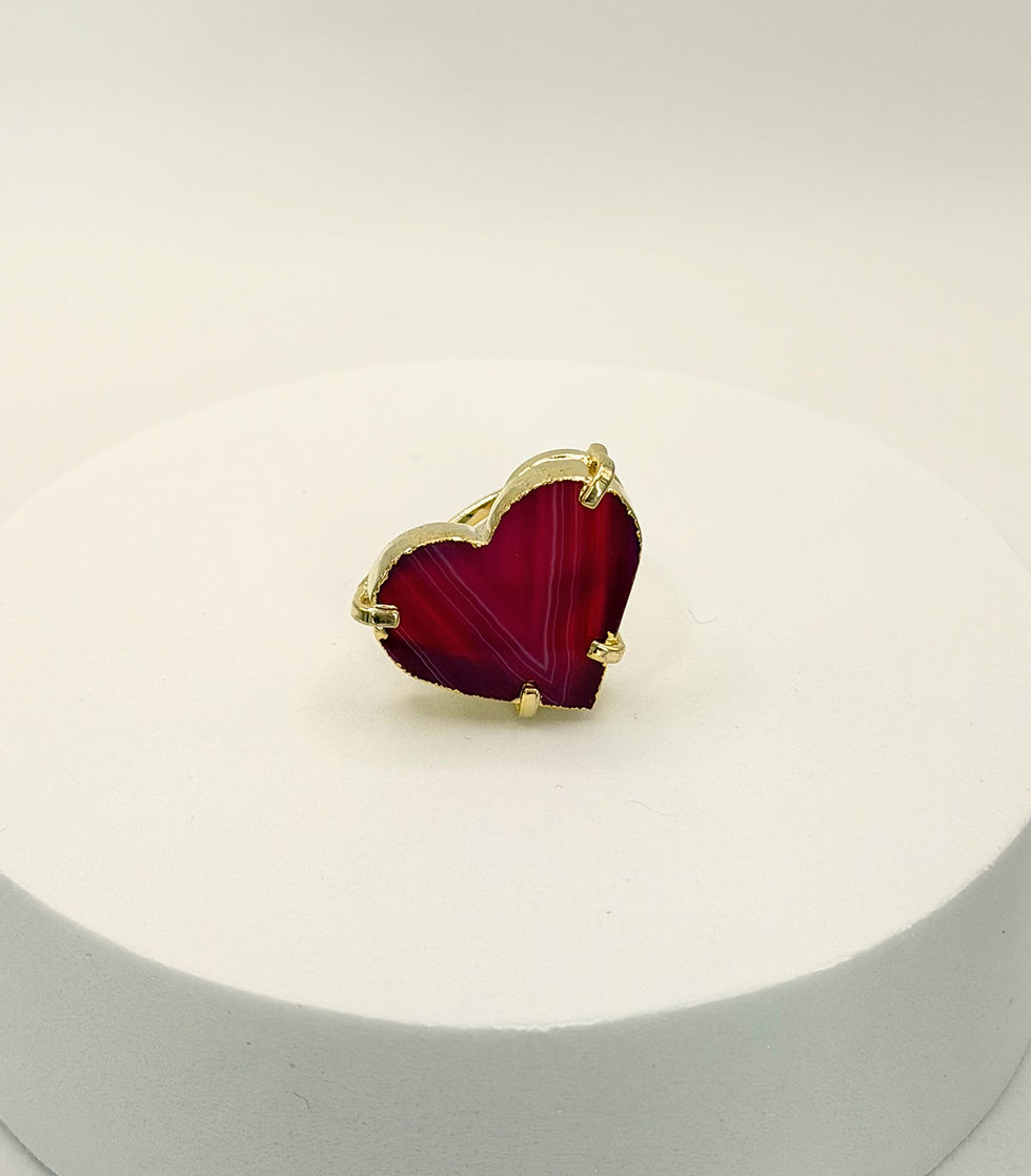 Pink Agate Heart Adjustable Ring